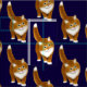La conception originale de beaux-arts d'un gingembre mignon ou d'un chat tigré orange sur un fond bleu de minuit de l'artiste et du concepteur animaux Carolyn McFann du studio de ronronnement de deux chats a imprimé sur le tissu de coton de haute qualité pour des fans de minou.