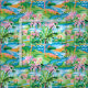 Une motif sans faille aux palmiers verts et roses sur de petites îles nichées dans l'océan, rendue dans un style aquarelle. Le design saisit l'essence sereine et tropicale de la vie insulaire avec des couleurs vives et fluides et des coups de pinceau artistiques.