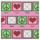Un joli cadeau de bâton brun avec un signe de paix et un coeur à côté de deux bâtons qui lit PEACE LOVE TWIRL sur un joli arrière - plan rose.