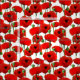 Un beau et brillant motif de pavots dessinés à la main sur leurs tiges arrangés en un motif de pavots dans un champ. Ce motif audacieux reste fidèle aux couleurs rouge vif de la fleur de pavot. C'est un joli motif floral pour les mois d'automne!