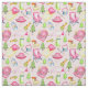 Ce tissu thématique camping est parfait pour les petites filles. Des illustrations d'aquarelle de tentes, de chaises de camp, de lanternes, de guimauves grillées et d'autres accessoires pour le joyeux camper sont dressées contre un arrière - plan rose pâle.