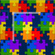 Le puzzle enclenché rapièce dans un arc-en-ciel de couleurs.