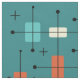 Ce design moderne d'inspiration atomique du milieu du siècle présente des lignes audacieuses et des formes géométriques turquoises, turquoise, jaune et orange.