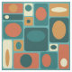 Cette motif abstraite d'inspiration rétro a un arrière - plan turquoise et des rectangles de différentes tailles en jaune et orange.