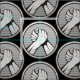 Médaille ronde en argent avec deux mains en lutte au bras. Couleur arrière - plan personnalisée.