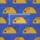 Ce mignon motif de rat taco déborde de fromage, de laitue et de tomate sur un arrière - plan bleu.