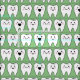 L'adorable tissu de dents joyeux souriant est parfait pour un dentiste amoureux des dents ou un coussin de fée des dents! Votre cabinet dentaire pédiatrique aura l'air bien avec des rideaux dans ce joli imprimé en tissu! Les jolies caricatures sont parfaites pour les enfants, les enfants et la pédiatrie ! Très agréable pour les enfants avec un arrière - plan vert !