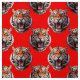 Seamless Repeat Roaring Tiger Head Pattern Design On Red Background