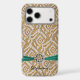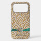 Gold Damask iPhone X Coque avec ruban rose chaud Faux stylisé et F aux Rhinestones