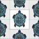 Ce motif répété de tortue de mer a été créé à l'aide d'un programme de dessin numérique, par lequel j'ai fait un motif mandala. La coquille est composée de différentes images de textures telles que le marbre, le verre et les coquillages pour créer un look beauté.