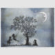 Tissue paper with an image of the moon in a cloudy sky with silhouettes of children playing.