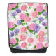 Watercolor pattern with various flowers and blue tit bird painted with watercolors.