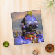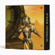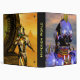 Artistic ,colourful and bright science fiction image in yellow,green,brown,white colours. Titan cyborg from Hyperion with his vibrant reflective chrome metallic carapace in a surreal environment with pyramids ,hot Sun,desert similar to an Egyptian landscape,animation frame from 3D movie Hyperion World . It is also a beautiful gift for Christmas, Holidays and special occasions.