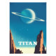 Titan & The ringed planet Saturn Vintage Style Space Art.