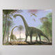 Background, flying: Quetzalcoatlus, a pterasaur and one of the largest known flying animals.