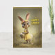 Celebrate the joy of spring with this adorable Easter greeting card featuring a sweet bunny in a sunny yellow dress and flower crown, holding a basket filled with colorful Easter eggs. Surrounded by soft golden light and fluttering butterflies, this whimsical design captures the warmth, happiness, and renewal of the Easter season. A charming card to send festive Easter wishes to friends, family, or anyone who loves cute bunny art and cheerful springtime scenes.