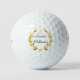 Custom name sample is shown with a gold laurel wreath and golf clubs print, shown is the Titleist Pro V1 Golf Balls.