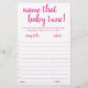 Carte de jeu devinette pour baby shower ou révélation du sexe du bébé "Devine cette chanson pour bébé" avec un lettrage à la main amusant et décontracté. Le design classique comprend une typographie de citation lettre à la main moderne en surimpression. Pour d'autres couleurs ou produits assortis, veuillez visiter la boutique JustFharryn sur Zazzle, ou contacter le concepteur, c/o Fharryn@yahoo.com Tous droits réservés. #bohochic #zazzlemade