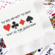 If you have ever asked yourself whether you should bid or not, you'll enjoy this bridge attitude paper napkin featuring the four card suits along with the bridge truism query: "To Bid Or Not To Bid? That Is The Question". Make others do a double-take with your wry bridge attitude at your next bridge event or gathering with this customizable bridge saying paper napkin.
