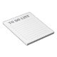 Custom notepad featuring "To do list" in heavy serif stencil typography with checklist for ten tasks, including check boxes. Includes forty tear away pages with hard cardboard backing.