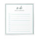 To Do list personalized notepad with double line border. Trendy script notepad title and traditional block name with 9 task lines and check boxes. Teal and aqua on a white background.