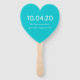 Heart-shaped wedding fan in aqua blue and white. Add names of the bride and groom to one side with wedding date and verse, "to have and to hold from this day forward", on the other. Use for an outdoor wedding ceremony to keep guests cool and keep bugs away! Easily change the colours in the customize area or ask me for help in making this item match your theme.