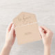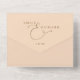 This all-in-one minimalist wedding invitation features elegant typography on a soft peach background. The invitation includes a perforated RSVP card that can be individually addressed or left blank so you can handwrite your guest's address details. Designed by Thisisnotme©