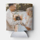 Personalized photo can cooler for a wedding with the message "to have and to hold, and to keep your drink cold". Double-sided with the same picture and text.