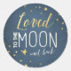 ♥ Your own perfect Sticker, Cupcake Topper, Favour Tag or Envelope Seal! Loved to the moon and back theme for a baby shower. With gold and blue.