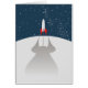 To The Stars! retro cartoon toy space rocket awaiting launch in the science fiction cartoon.
