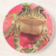 A Florida toad (frog) stands up on his front legs against a background of printed bougie pink pixie leaves. Colourful and an eye catching pose! Use the customize button to add your own text (c) Susan L. Marsh
