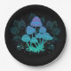 Mysterious, bioluminescent, hallucinogenic, bright toadstools with bushes of marsh plants on night, dark, glowing background. Glowing mushrooms. Goblincore, Mushroomcore,