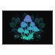 Mysterious, bioluminescent, hallucinogenic, bright toadstools with bushes of marsh plants on night, dark, glowing background. Glowing mushrooms. Goblincore, Mushroomcore,
