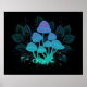 Mysterious, bioluminescent, hallucinogenic, bright toadstools with bushes of marsh plants on night, dark, glowing background. Glowing mushrooms. Goblincore, Mushroomcore,