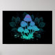 Mysterious, bioluminescent, hallucinogenic, bright toadstools with bushes of marsh plants on night, dark, glowing background. Glowing mushrooms. Goblincore, Mushroomcore,