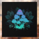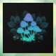 Mysterious, bioluminescent, hallucinogenic, bright toadstools with bushes of marsh plants on night, dark, glowing background. Glowing mushrooms. Goblincore, Mushroomcore,