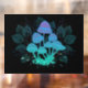 Mysterious, bioluminescent, hallucinogenic, bright toadstools with bushes of marsh plants on night, dark, glowing background. Glowing mushrooms. Goblincore, Mushroomcore,
