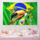 Brazilian Toco Toucan on Tropical Jungle, wearing a Scarf with Brazil Flag Colours. For Brazil Lovers and for Soccer / Football World Cup Supporters!