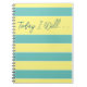 What will you do today? Get Inspired ~ Keep track of daily tasks and goals in this simple stripes style spiral journal; featuring the inspirational typographic design 'Today I Will...' in elegant script lettering. Change the notebook design with the easy-to-use Zazzle editing tools; customize the background colours, add a name, change font styles and colour too!