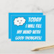 How about this adorable aqua blue color postcard that says 'TODAY I WILL FILL MY MIND WITH GOOD THOUGHTS!' in big white letters below a cute and extremely happy smiling cloud!