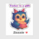 Let this joyful blue owl remind you to cherish the moment! Wearing a party hat and holding a glowing birthday cake, this adorable design carries the heartwarming affirmation: "Today is a gift."
