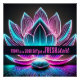The background design features a pink and blue neon lotus flower.
