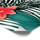 The bold, black background design features green, black and white jungle leaves and hot pink tropical flowers.