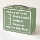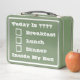 Lunch Box Lunchbox in Green Colour finish printed with Today Is Breakfast Lunch Or Dinner Inside My Lunch Box Lunch Box ? digital graphic text typography all in white colour design by TheFabricSeal print on demand shop at Zazzle.com #ZazzleMade https://www.zazzle.com/store/thefabricseal TheFabricSeal©️Original.