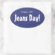 Whether is for a worthy cause or because they earned it, these fun Jeans Day stickers will be a hit with employees around the office. These oval stickers feature a solid blue background and say "Today is MY Jeans Day!" Perfect for any company or business who has jeans days. You can easily customize the text to say whatever personalized message you want. Change the font style, font colour, add additional text and even add photos by clicking the "Customize it" button.