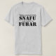 - Customizable Men's and Women's t-shirts, displaying the phrase "Today started with SNAFU and ended in FUBAR." in Black Text. - SNAFU - Situation Normal All Fouled Up. - FUBAR - Fouled up Beyond All Recognition. - This is just a humourous Shirt design meant to get a laugh, to ease the tension of a bad day, or as your end of a bad day house shirt you wear while kickin' back and drinking a beer. - Click "Customize it" to resize, delete, or move the images as you prefer. Hold down the "Ctrl" button to adjust objects in smaller increments, and the "Shift" button for larger increments. *** Lighten or Darken grey text to stand out more or less depending on the colour of the shirt you choose. - Change the colour of the text to show better on the colour shirt you choose. Black Text looks best on light and some dark coloured t-shirts only, White text is for dark shirts only, and Colour text are for all options.