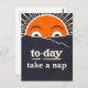 This postcard features a reproduction of a vintage poster of the sun, altered with the phrase, "Today, take a nap."