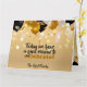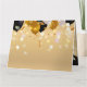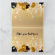 Modern personalized greeting card design featuring gold, white and black balloons, confetti, bokeh lights and sparkles on a gold background. The text is fully customizable.