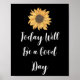 This poster has the inspirational message of, "Today will be a Good Day." This message is set on a black background with a large yellow sunflower centred at the top of the poster.