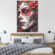 Portrait abstrait captivant d'une femme dans le maquillage du Jour des morts, son visage entouré de fleurs fluides et colorées. Les détails complexes se fondent dans des formes audacieuses et expressives, créant un hommage moderne et artistique aux traditions riches de Día de los Muertos.